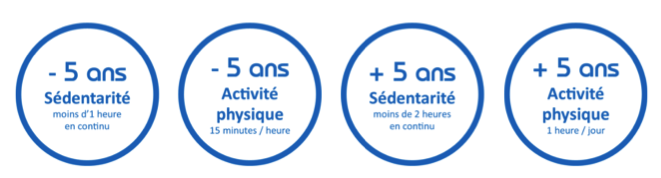 Pour une meilleure santé, il est en effet recommandé de réduire les comportements sédentaires et d’encourager la pratique quotidienne d’activités physiques: