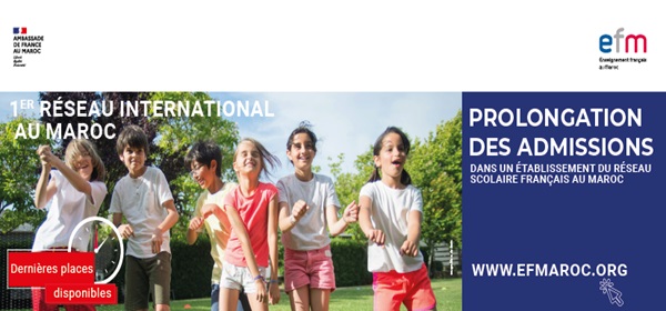 23Avr, 2022 Campagne complémentaire d’admissions du 27 avril au 20 mai 2022 Une campagne complémentaire d’admissions sera ouverte du 27 avril au 20 mai 2022. Toutes les informations sur le site www.efmaroc.org Lire plus