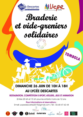 Le 26 juin prochain l’UCPE organise une braderie et vide- greniers solidaires au Lycée Descartes afin de contribuer au financement de la caisse de solidarité du pôle Rabat Kénitra.